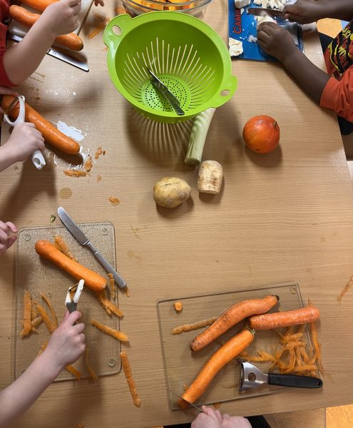 Les élèves des quatre classes de maternelle ont participé avec enthousiasme à la réalisation d’une soupe de légumes. Ils ont découvert les légumes en les...