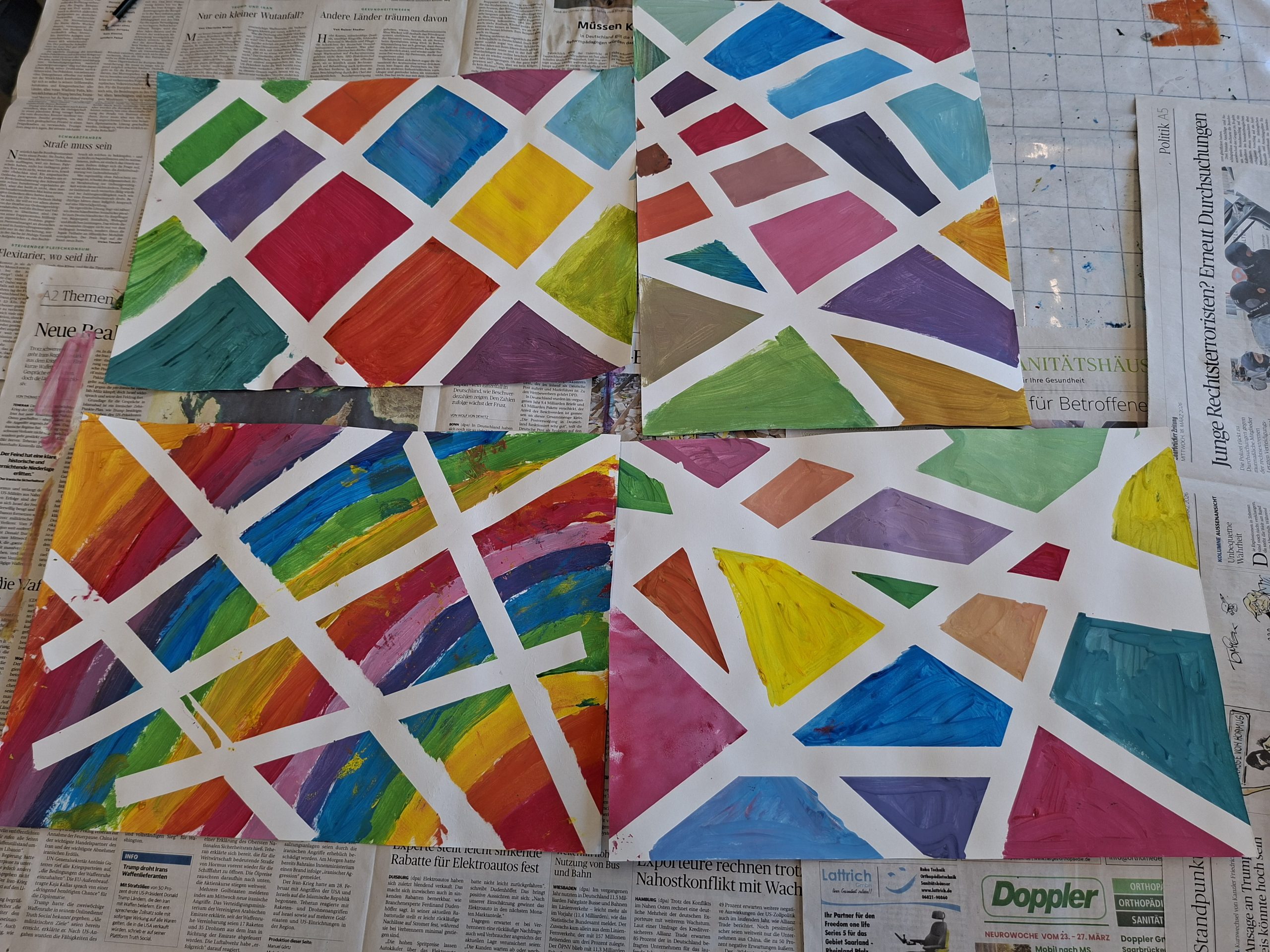 Le 22 avril, la classe de CE2 s’est initiée à une nouvelle technique artistique autour de la thématique « Farbe, Form und Material » durant une heure. A la suite de ce « Workshop », les élèves ont pu observer des œuvres contemporaines dans la Galerie Moderne. Se confronter à des œuvres d’art, prendre le temps d’observer et comprendre l’intention de l’artiste permet aux élèves d’appréhender une première culture artistique et de susciter l’envie de fréquenter des lieux culturels.