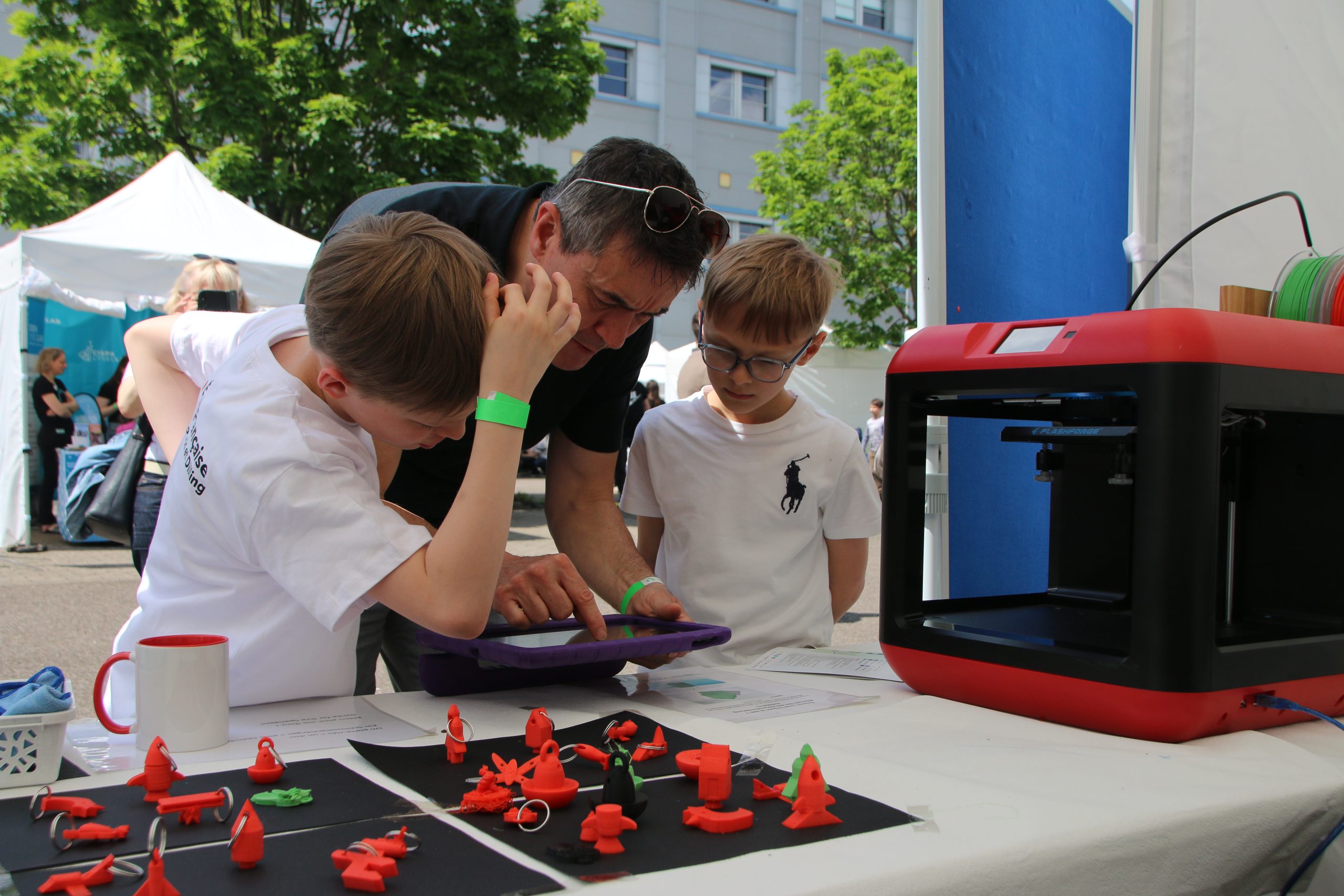 Impression 3D et initiation à Tinkercad, possibilité d’acheter les porte-clés réalisés par les élèves, ateliers de programmation par blocs à l’aide de la carte Calliope …