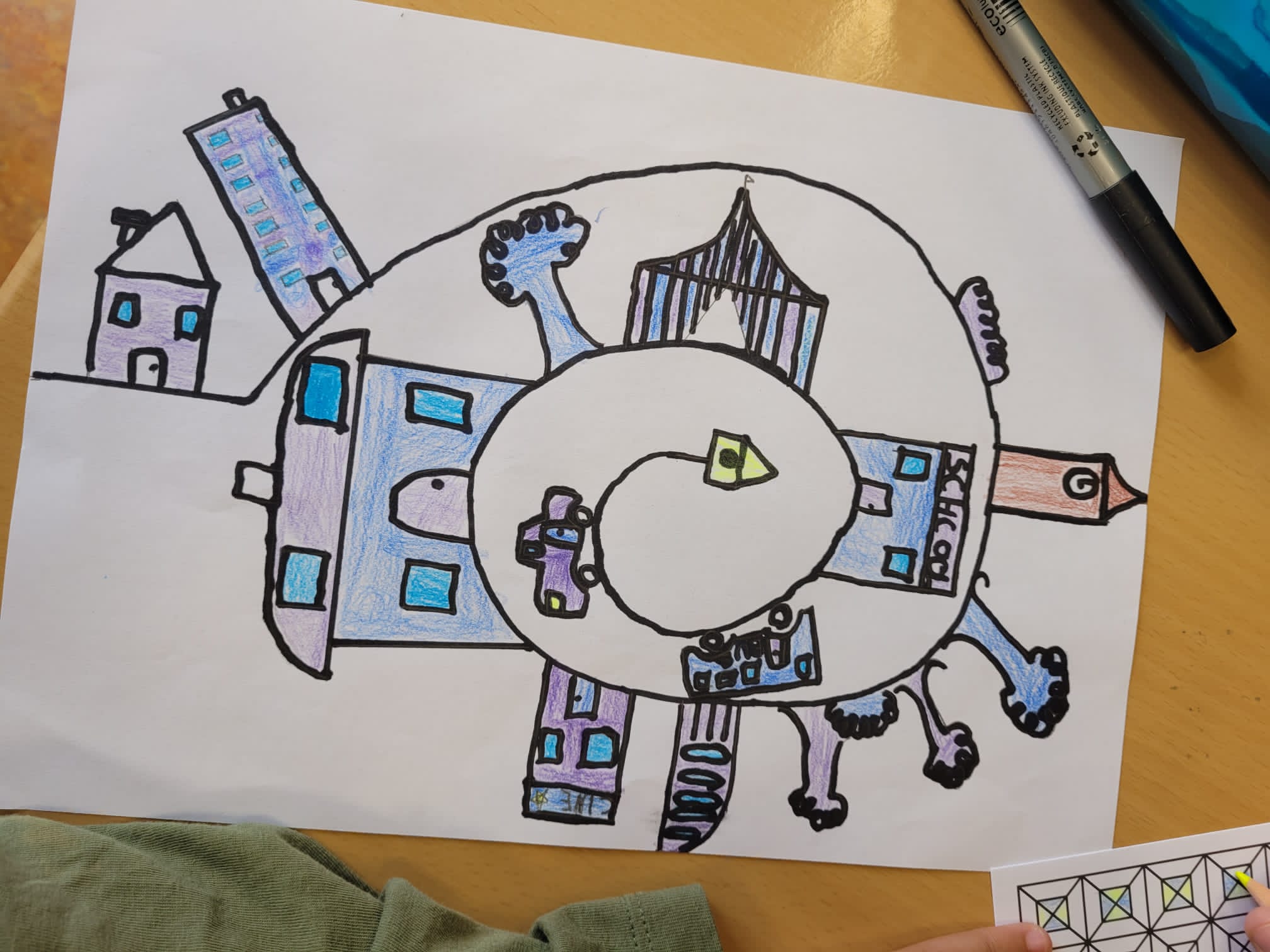 Träumen, erfinden, malen … Die CM2-Schüler malen ihr Wolkenkuckucksheim*, ihre Traumstadt in den Wolken.