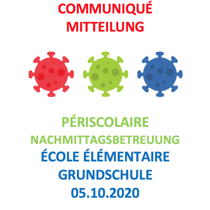 - Die Schüler der Maternelle sind von dieser Quarantäne nicht betroffen und die Nachmittagsbetreuung der Maternelle (Garderie) findet normal statt.