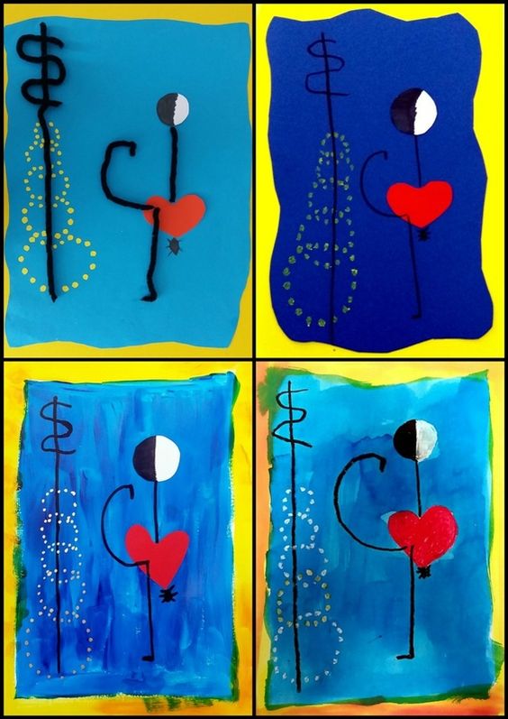 Voici le fonctionnement : pendant les jours de vacances et ceux qui suivront, vous pouvez peindre, construire, faire de la musique sur le thème « Juan Miró ».