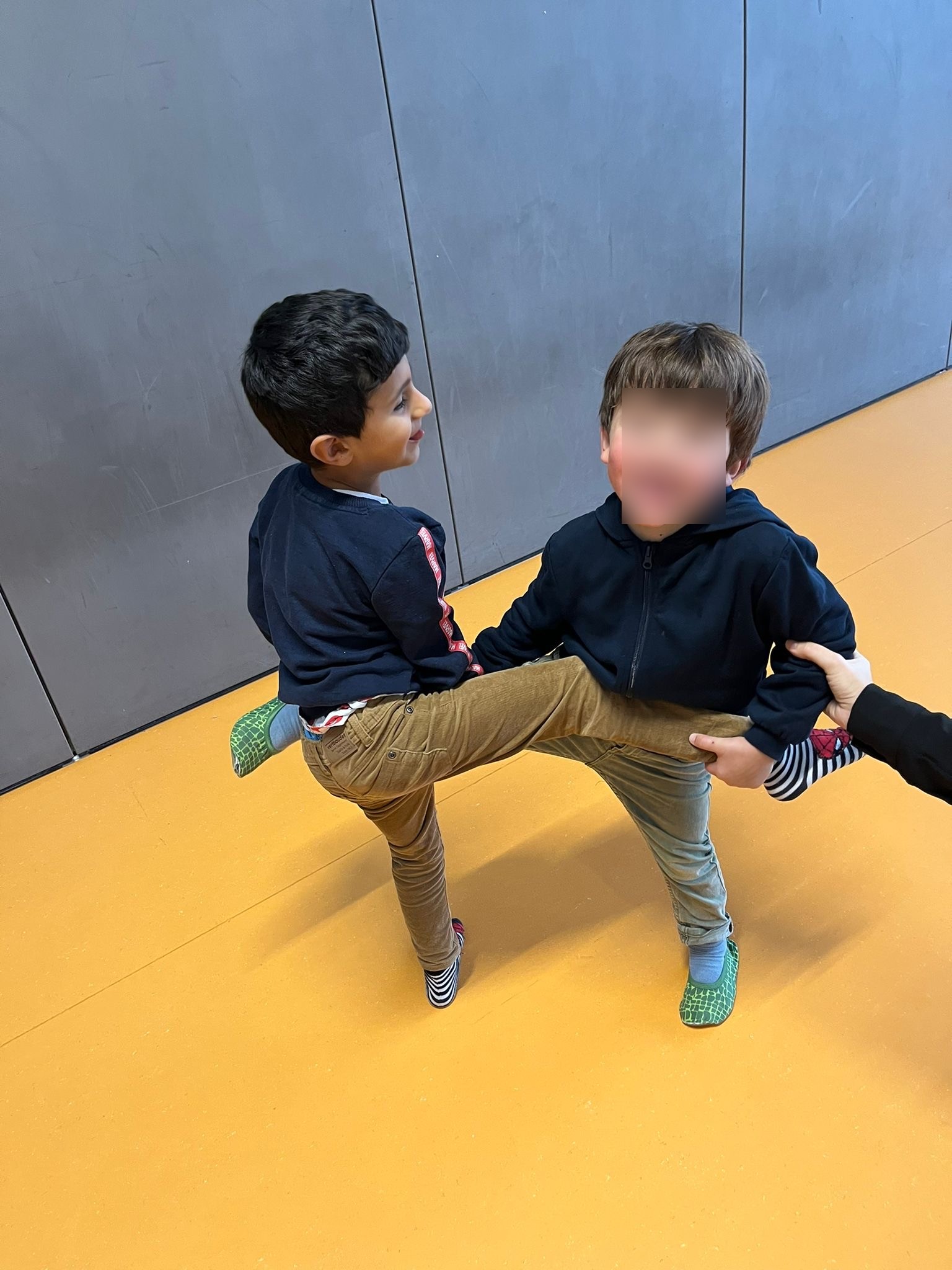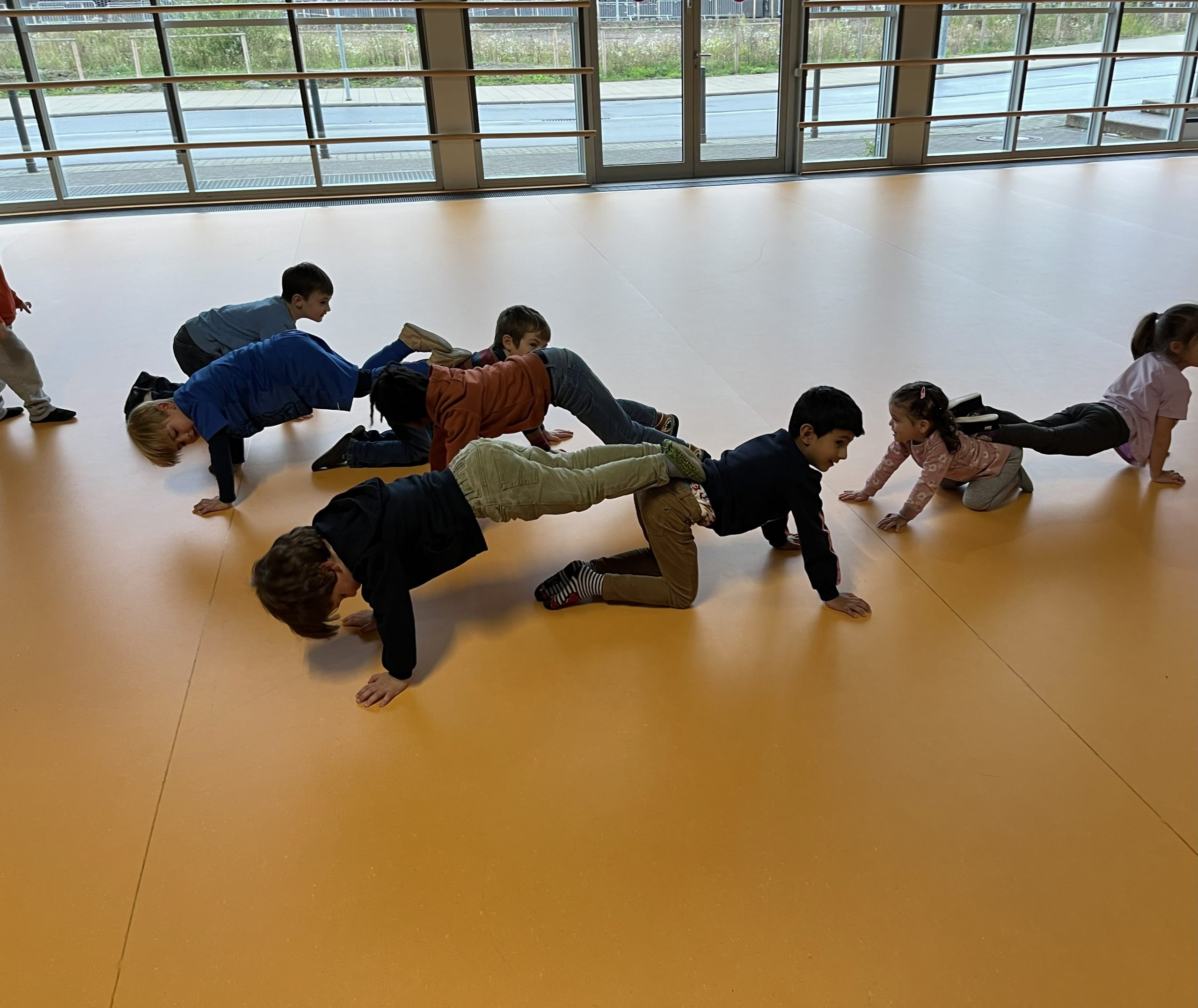 En motricité, nous avons eu le plaisir de découvrir l’acrosport avec les élèves de maternelle. Ensemble, nous avons réalisé différentes figures en duo ou en petits groupes, en apprenant à coopérer, à s’écouter et à se faire confiance. Chaque enfant a pu participer selon ses capacités, dans un esprit de respect, d’entraide et de bonne humeur. Ce moment a été riche en sourires, en fierté et en joie de partager une activité collective où chacun a trouvé sa place.