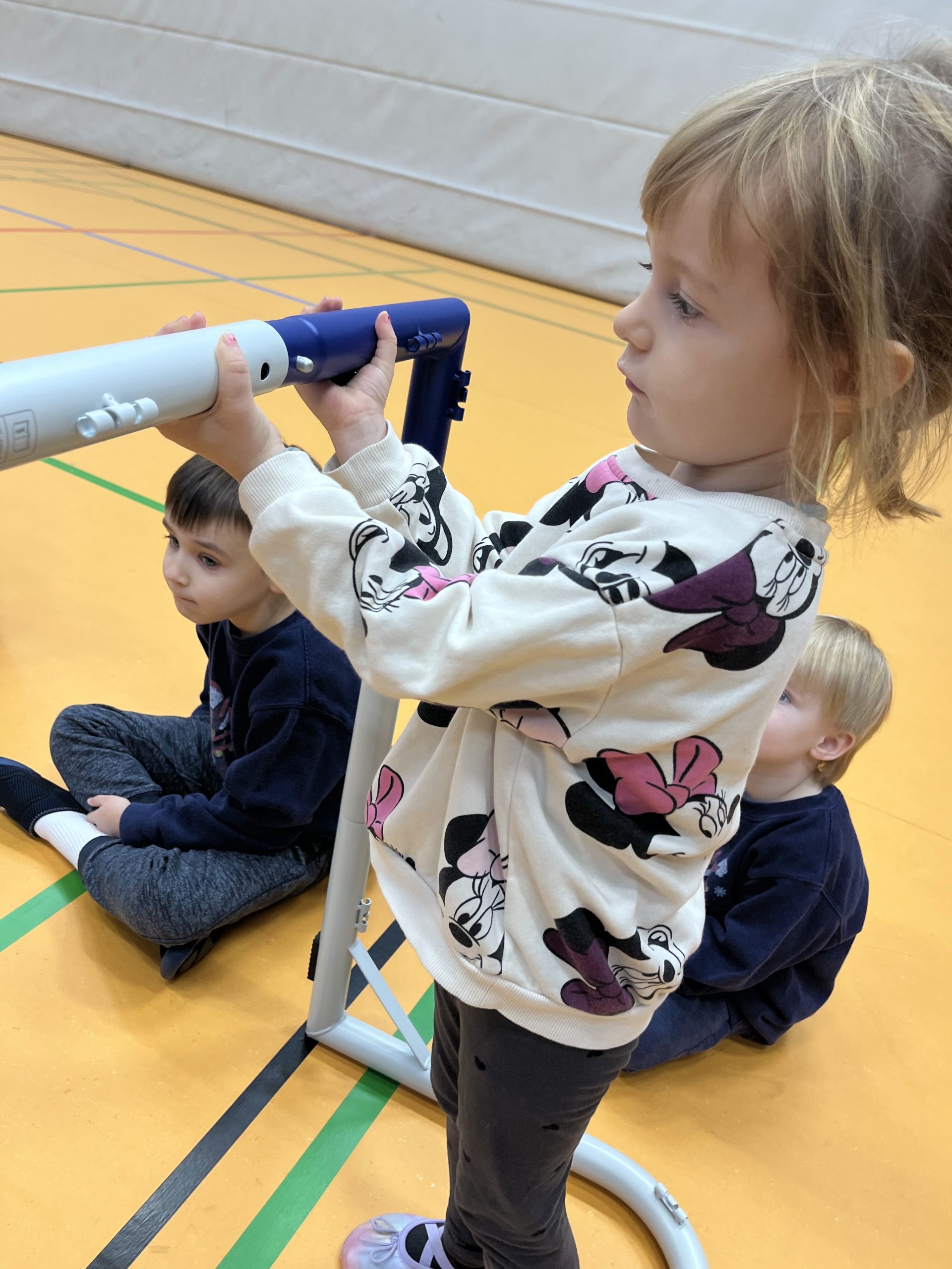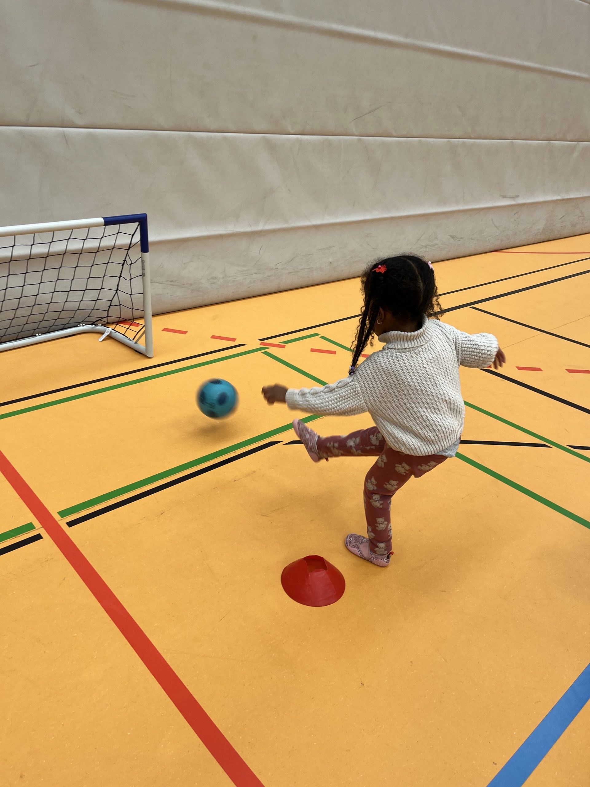 En motricité, nous avons commencé une initiation au football avec les élèves de maternelle. Les enfants apprennent à manipuler le ballon avec leurs pieds, à le faire passer d’un pied à l’autre, à taper dedans et à viser le but. Ces séances se déroulent dans la bonne humeur, entre sérieux et amusement, chacun progressant à son rythme tout en découvrant le plaisir de jouer ensemble. Nous poursuivrons cette activité jusqu’à la fin du mois de décembre.