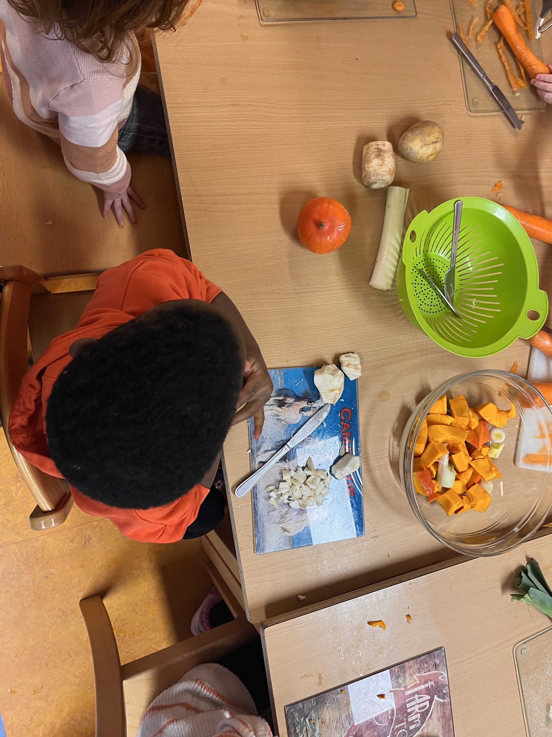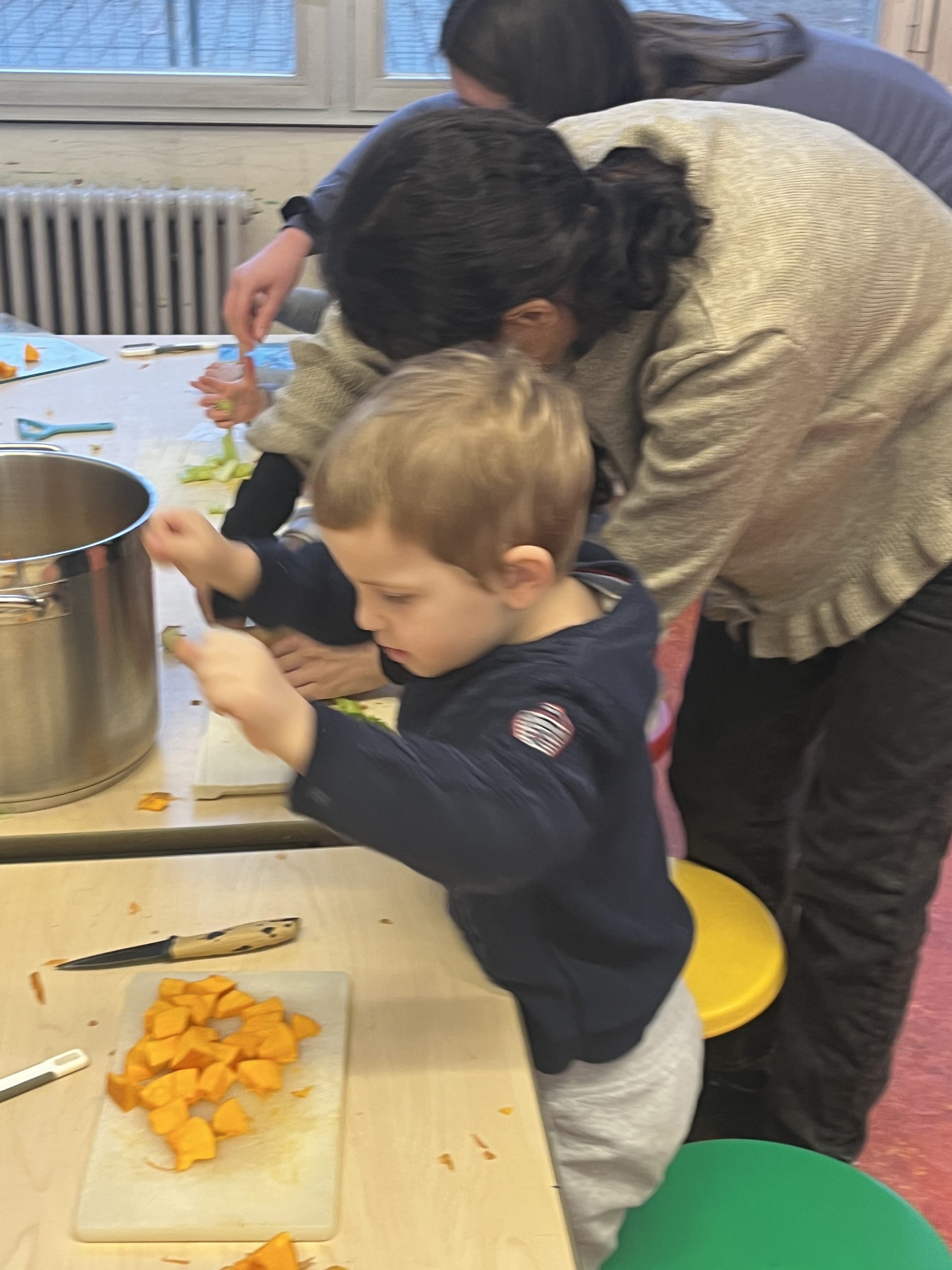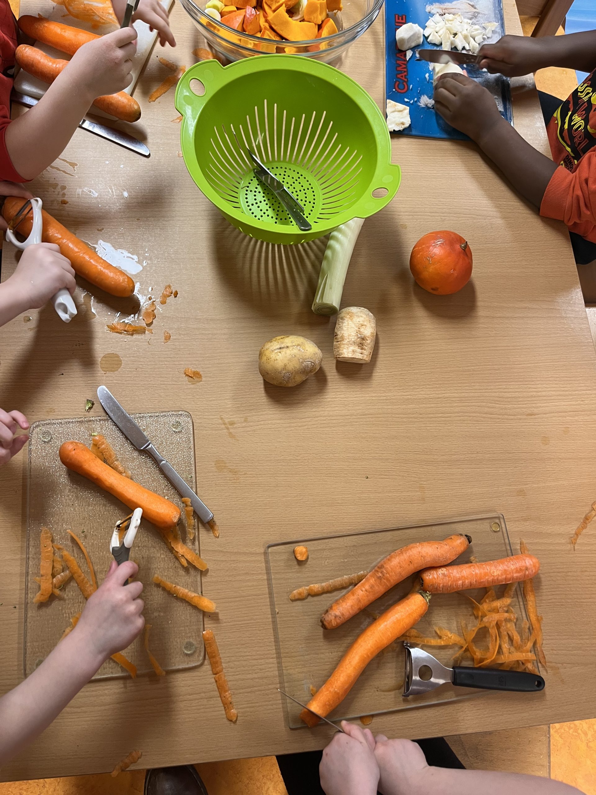 Les enfants ont ensuite coupé les légumes, puis observé leur transformation pendant la cuisson.