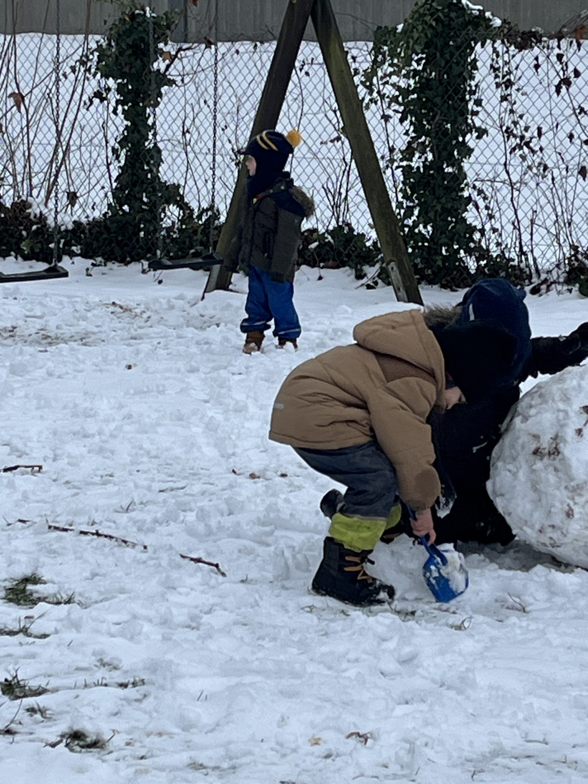 Les activités de motricité ont été riches : marcher dans la neige, sauter, glisser, lancer des boules de neige et garder l’équilibre sur un sol différent ont sollicité le corps et la coordination.