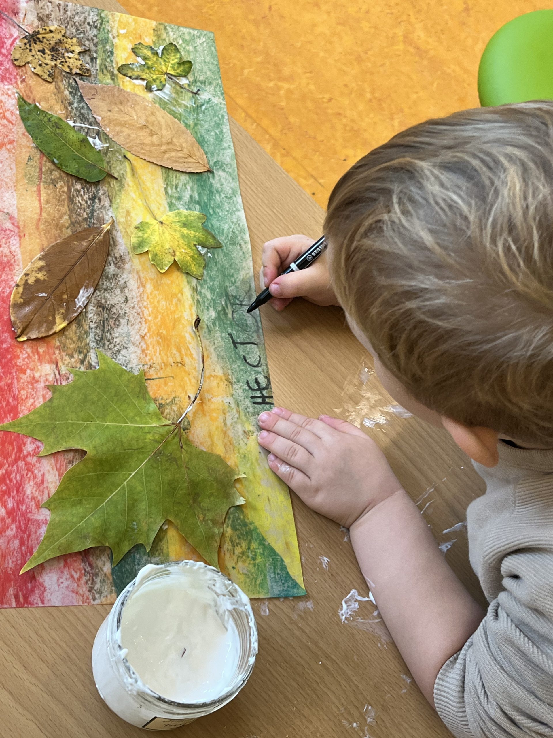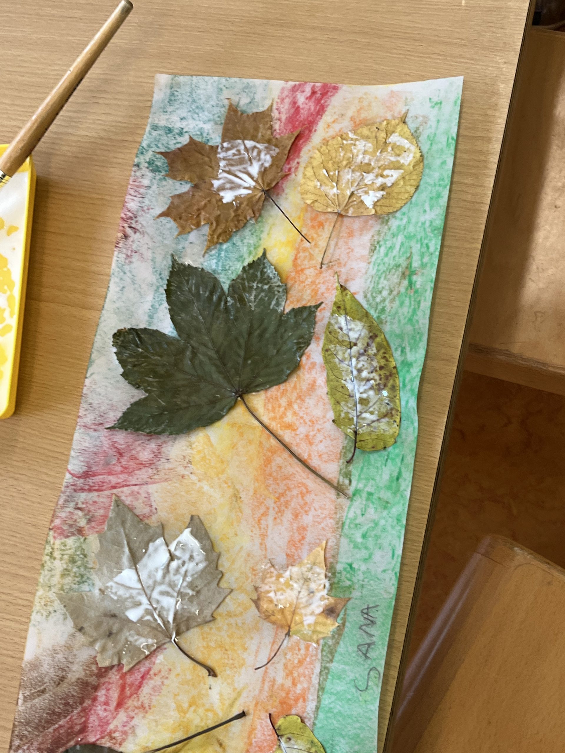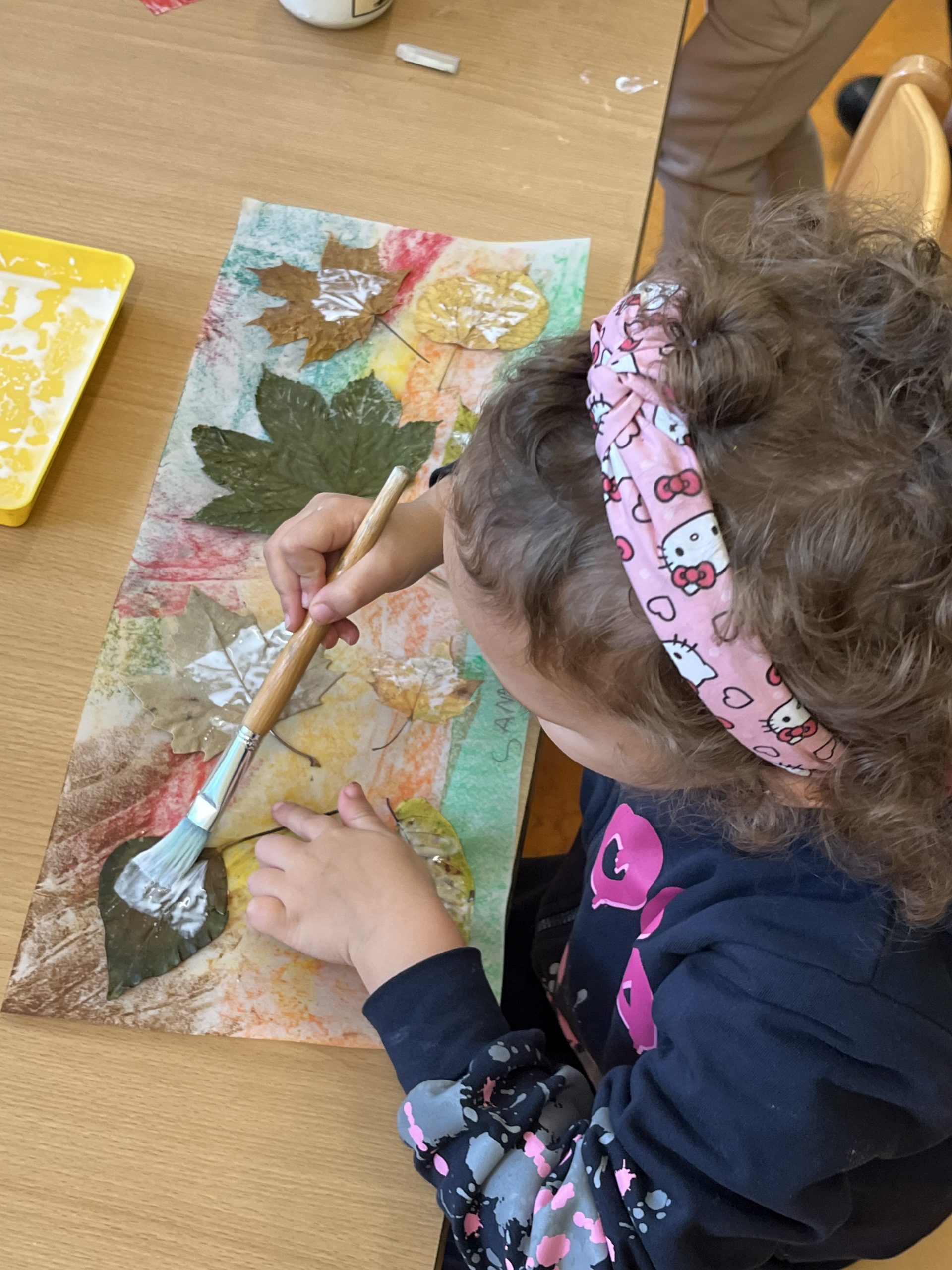 Chaque classe a choisi un thème différent : formes, jeux de couleurs, nature, animaux, empreintes de main…