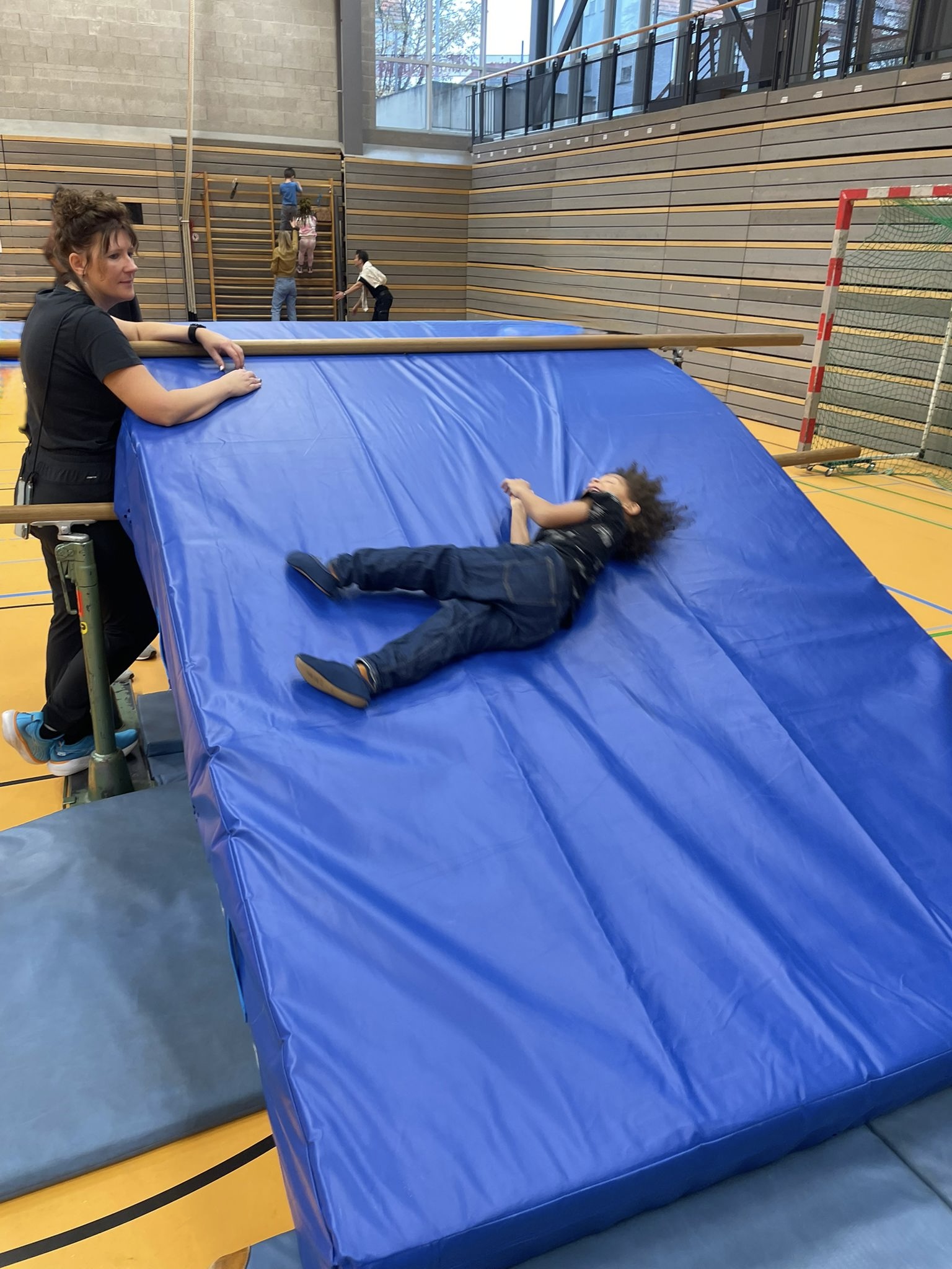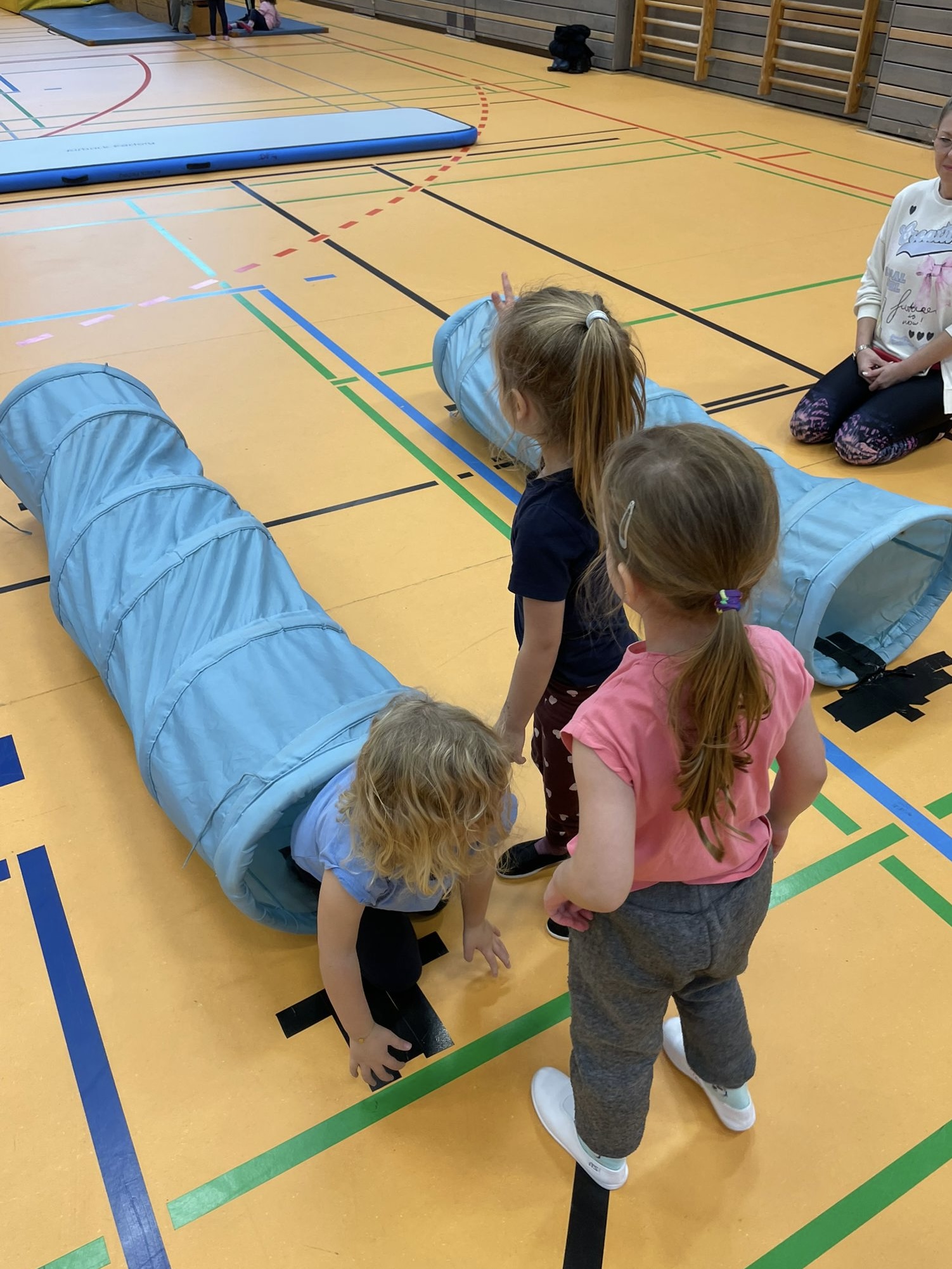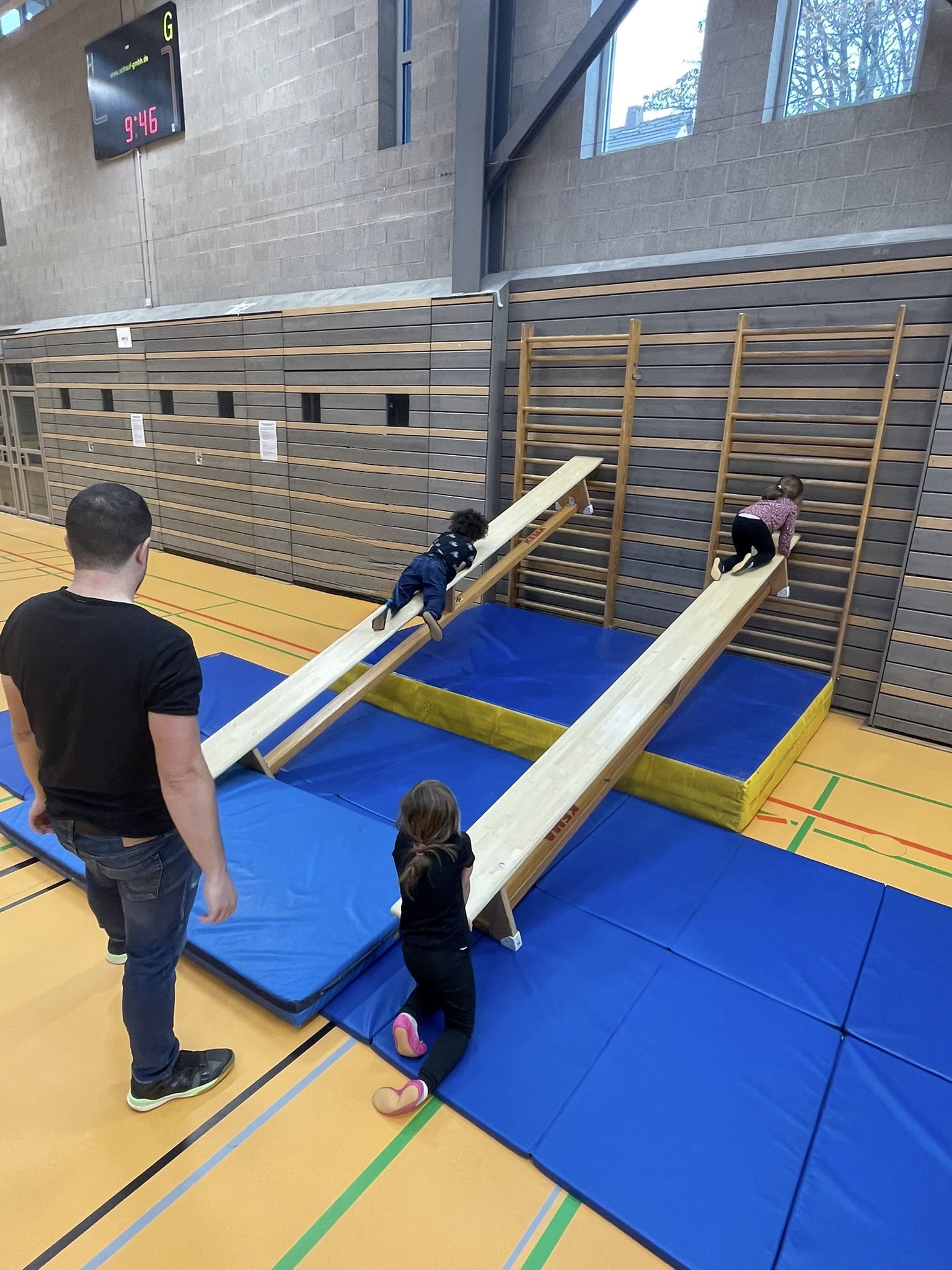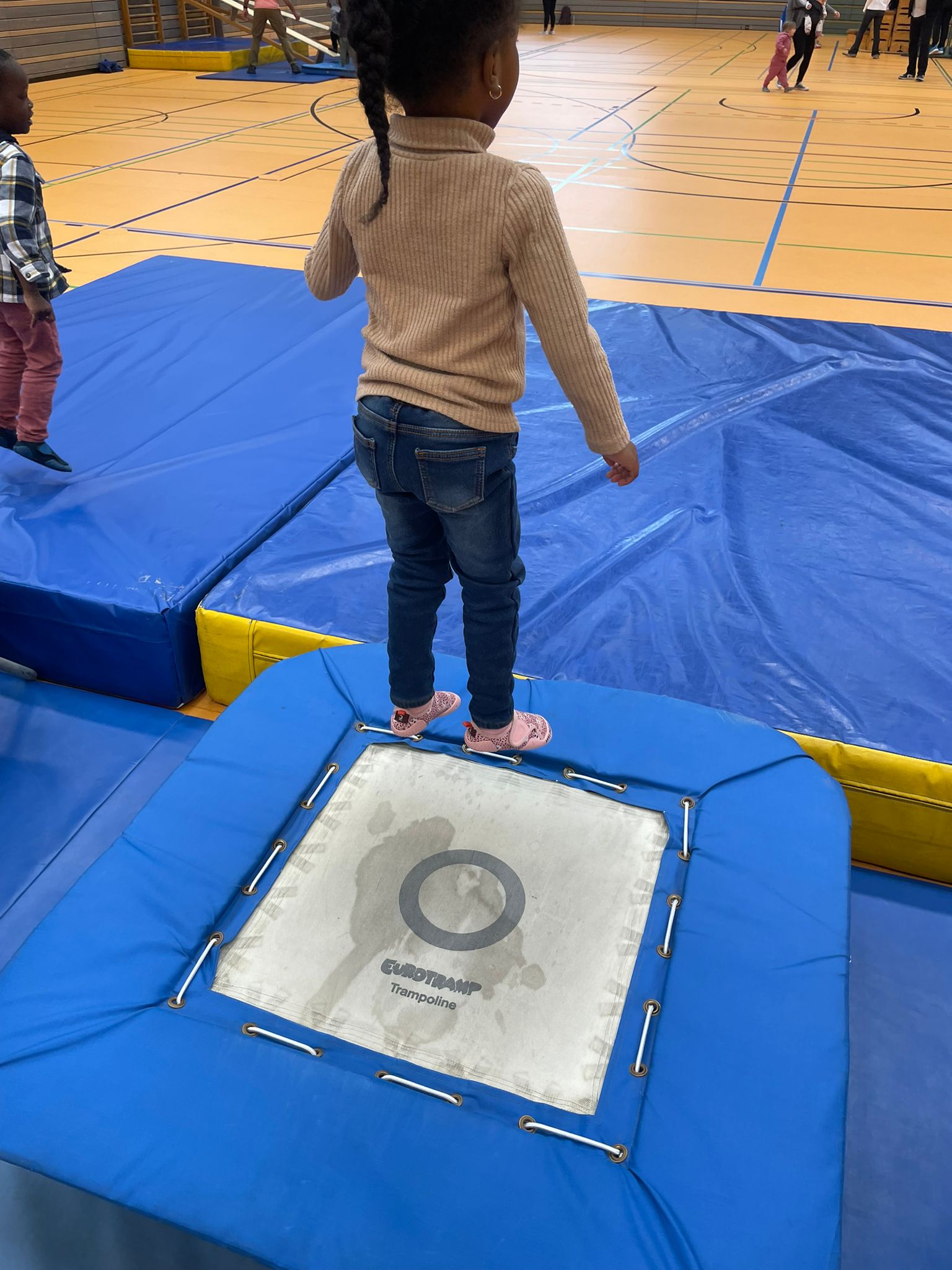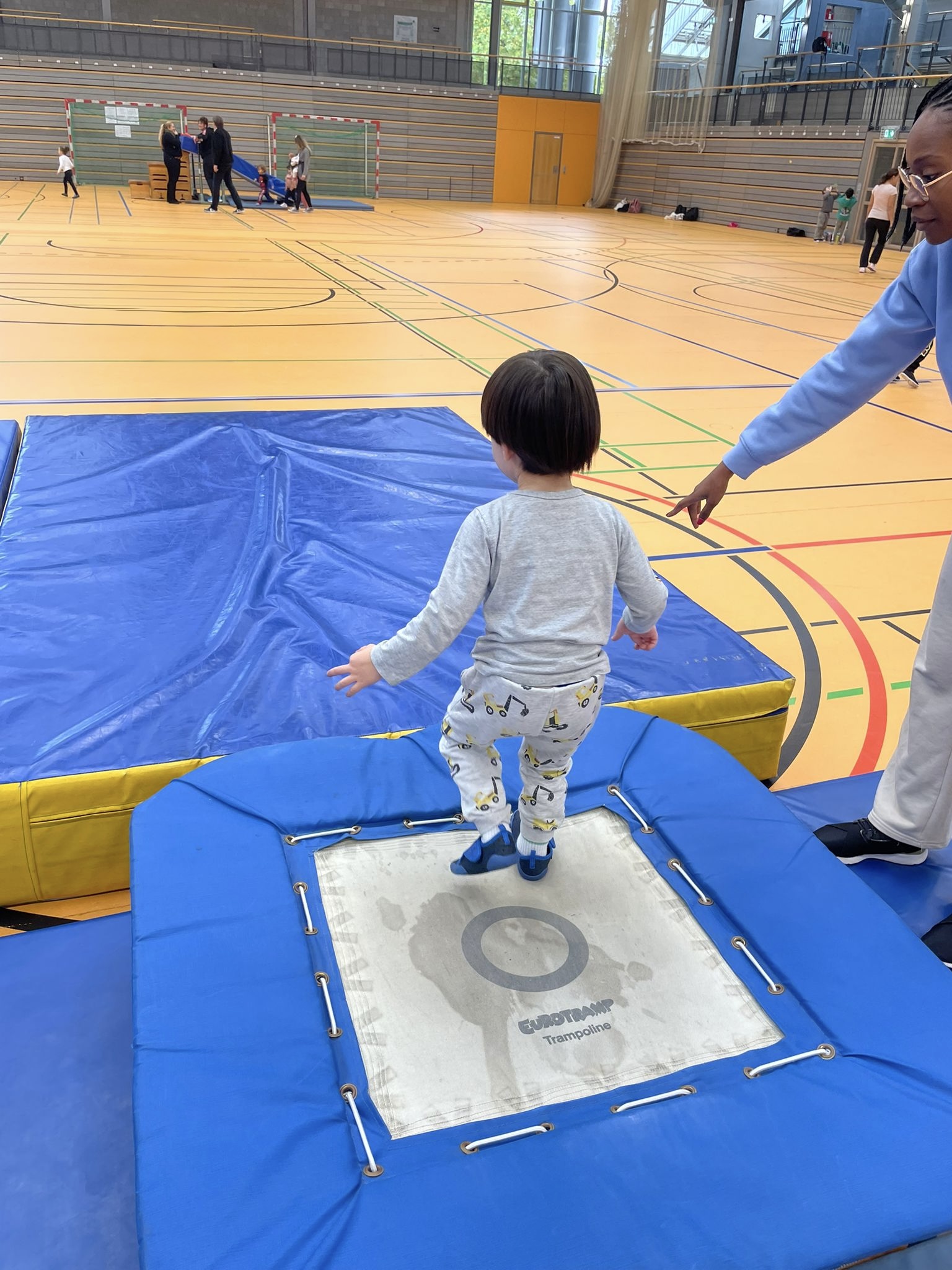 Le grand espace du gymnase Joachim-Deckarm-Halle était mis toute la matinée à disposition des quatre classes de maternelle pour l’occasion.
