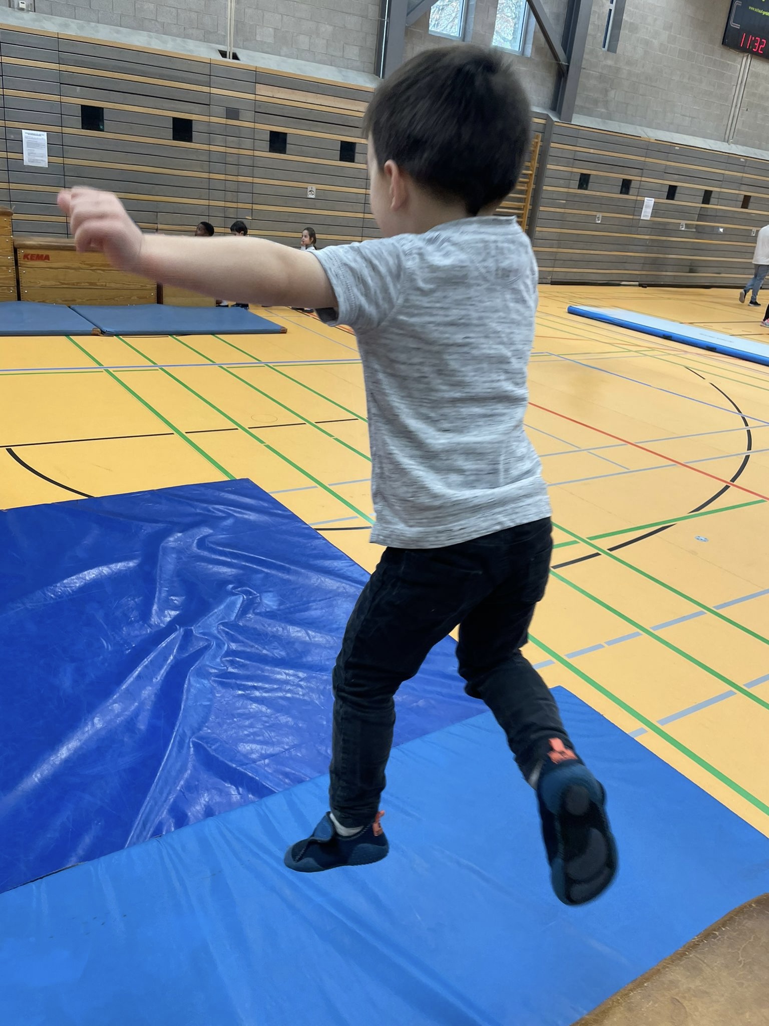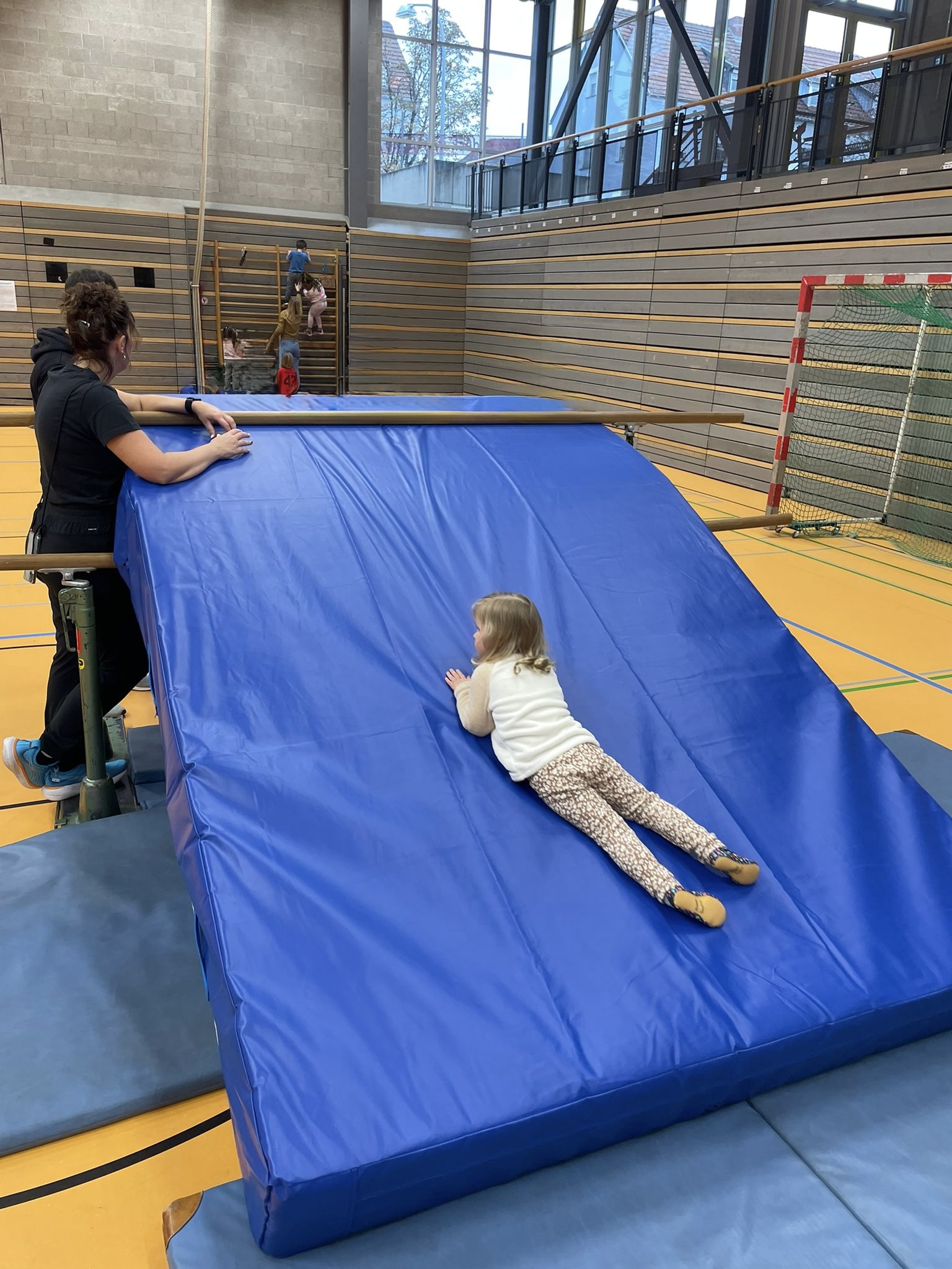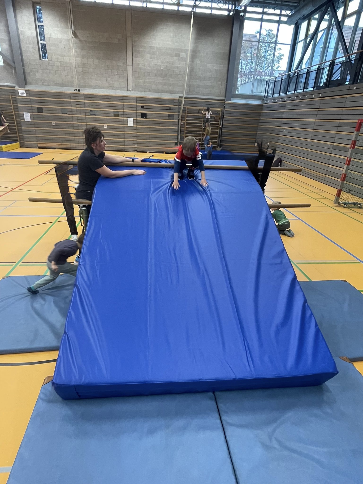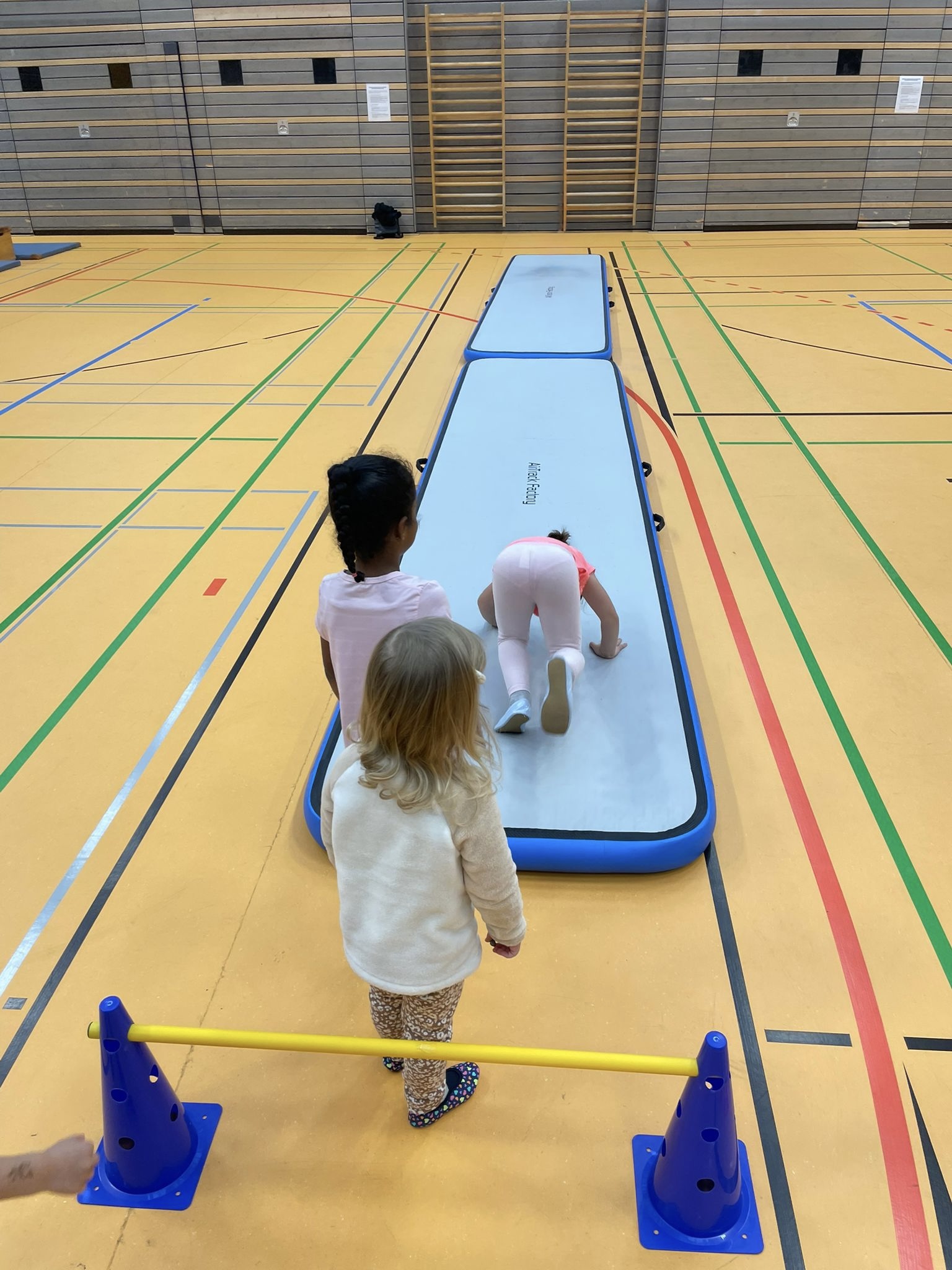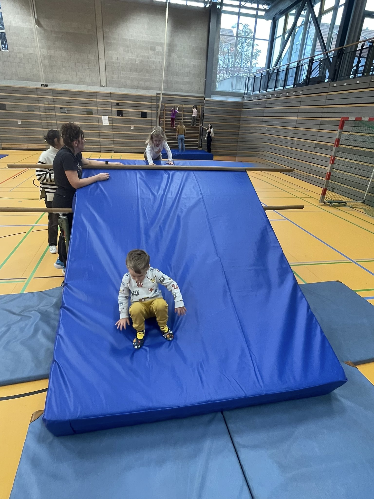 Le grand espace du gymnase Joachim-Deckarm-Halle était mis toute la matinée à disposition des quatre classes de maternelle pour l’occasion.