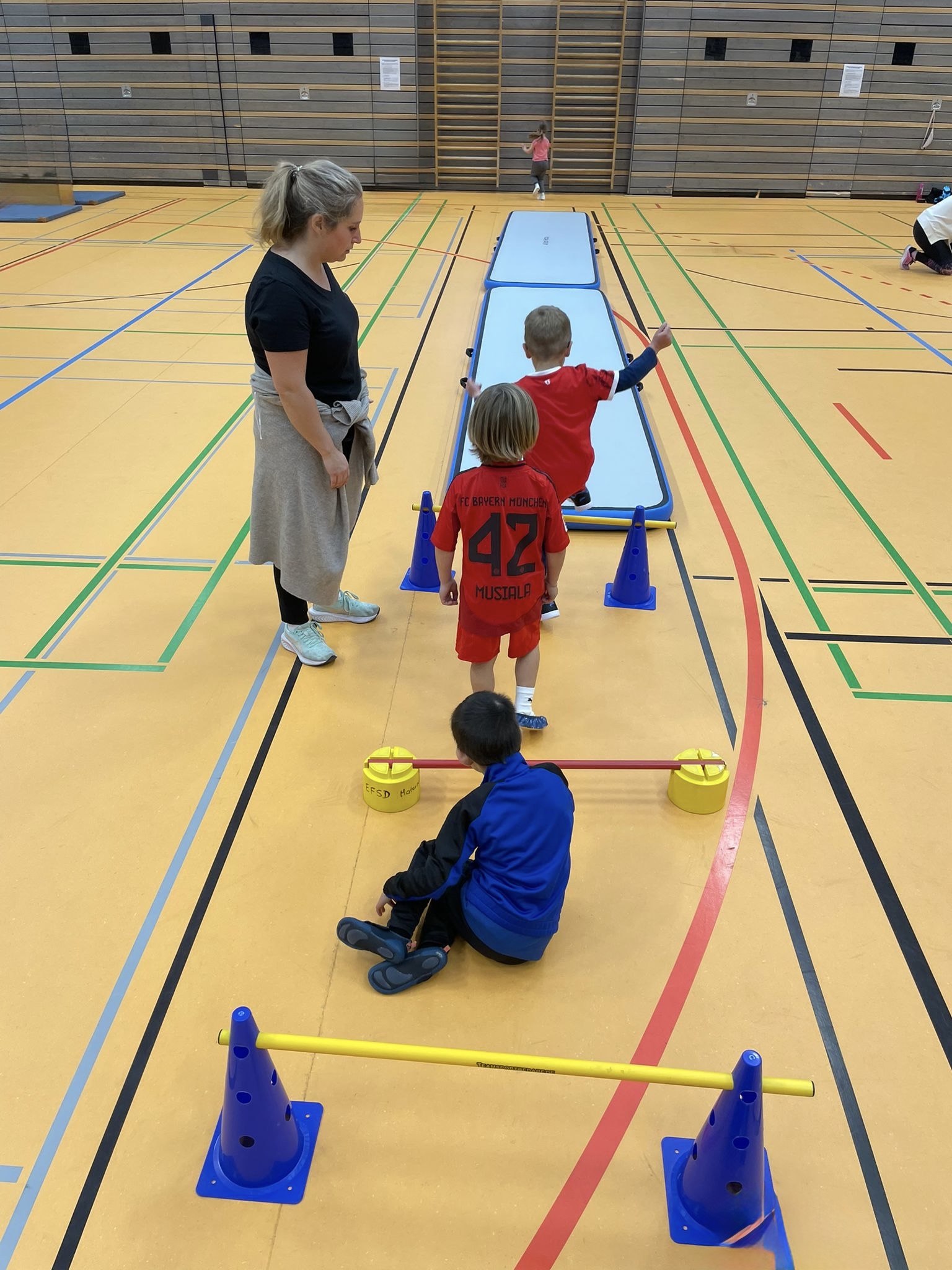 Alle Kinder der vier Klassen der Maternelle konnten an neun aufgebauten Stationen verschiedene sportliche Aktivitäten ausprobieren. Die Stationen konnten sie sich je nach Lust und Laune selbst aussuchen.