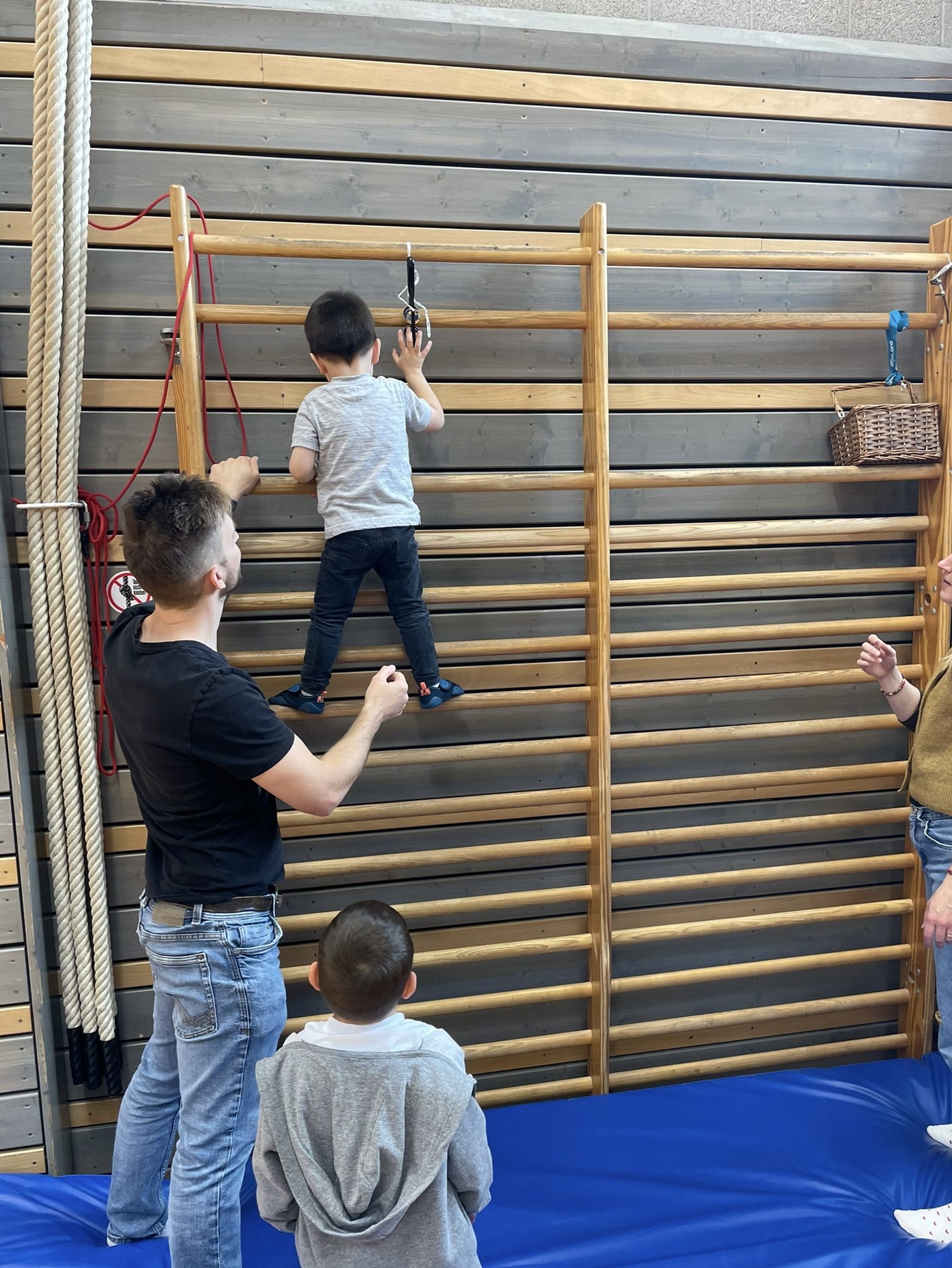 Les différents ateliers, au nombre de neuf, étaient en libre accès et les enfants pouvaient choisir leurs activités. Ils ont ainsi eu plaisir à passer de l’une à l’autre comme ils le souhaitaient pour courir, sauter, ramper, grimper, escalader, s’équilibrer sur des bancs, se balancer, glisser, lancer, viser et surtout… s’amuser ensemble.