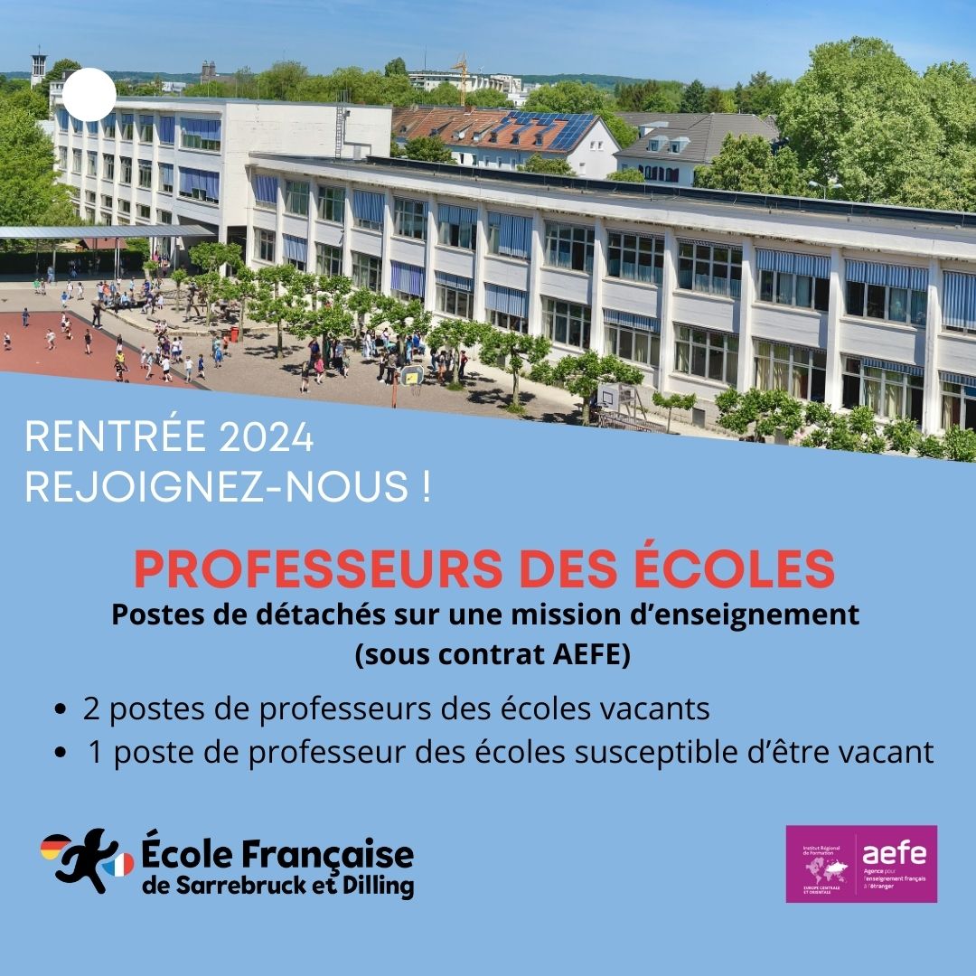 L’École française de Sarrebruck et Dilling recrute pour la rentrée 2024 :