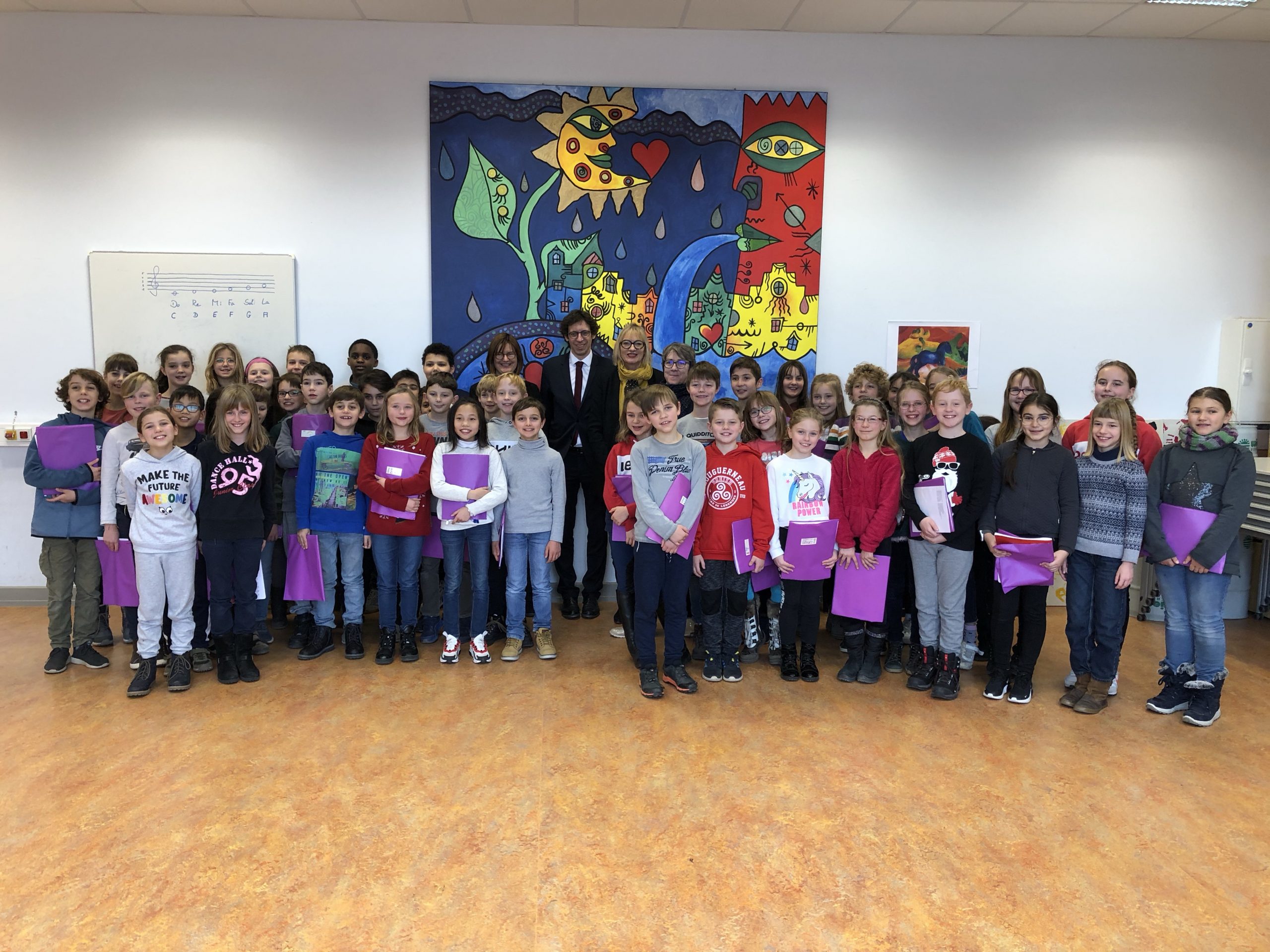 Après un accueil en chansons par les CM2 de l’École française de Sarrebruck et Dilling (sous la direction de Stephan Federkeil), ils ont fait le tour de nos deux établissements, guidés par Madame Isabelle Ledru-Neirynck, Directrice de l’EFSD et Madame Clarit Alofs, Proviseure française du Lycée franco-allemand de Sarrebruck, et ont pu découvrir avec grand intérêt le quotidien de nos élèves.